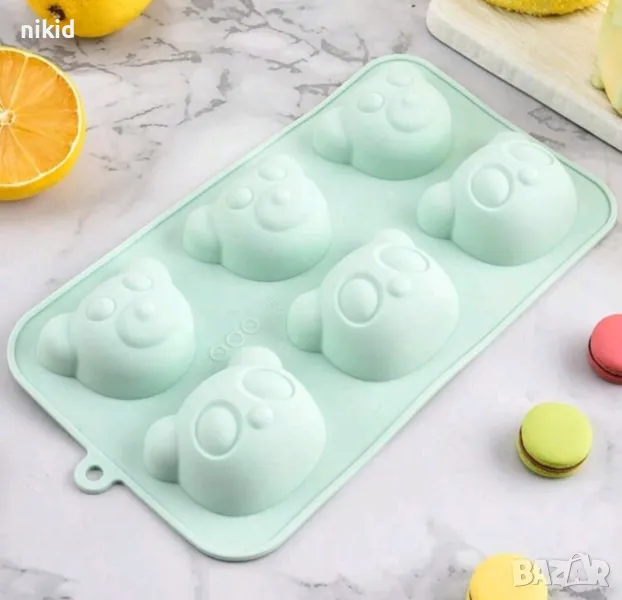 6 глави глава мече панда силиконов молд форма фондан шоколад гипс кексчета мъфини → Обява 48776871