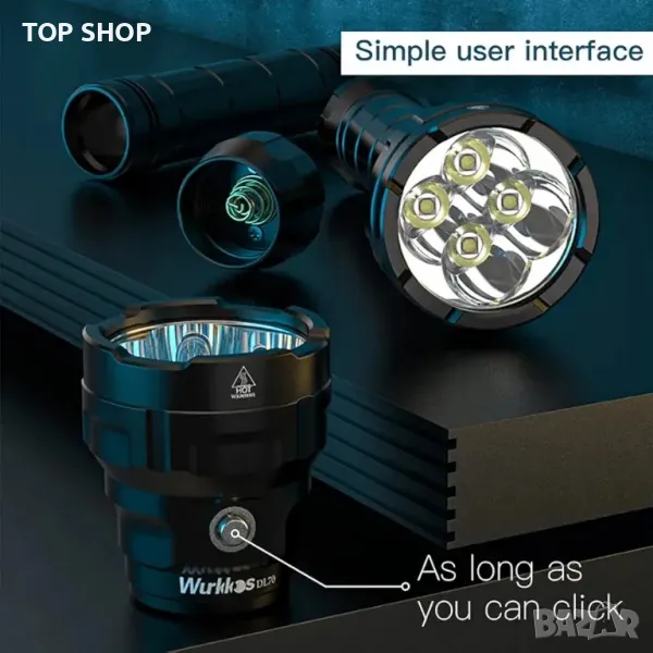 13000LM фенерче за гмуркане: Wurkkos DL70 е професионално, супер ярко, безопасно и надеждно фенерче за гмуркане и е вашият единствен доверен партньор под вода. Оборудван с 4 светодиода XHP50.2, той предлага максимална мощност до 13000 лумена с максимален обхват от 500 метра. ви предлага достатъчно чувство за сигурност. Може да ви позволи да виждате ясно заобикалящата среда и също така да ви забелязва от приятели гмуркачи през цялото време.