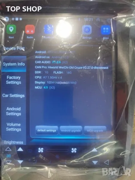 - Показване на лентата на състоянието на главното меню: може да се промени на музика/радио/BT стерео плейър и часовник/дата/седмица - Промяна на приложенията позиция на иконата: Да