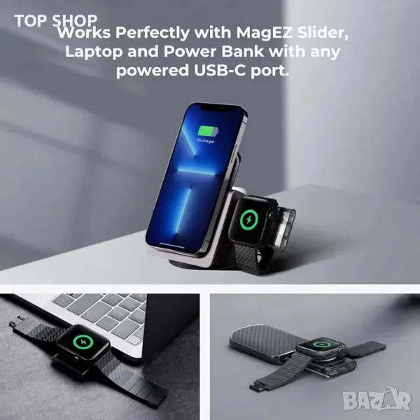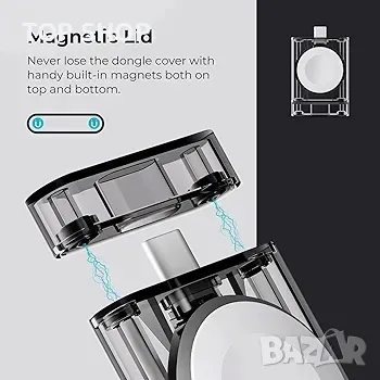 [Магнитна функционалност] Специално проектирана магнитна капачка се прикрепя към края на ключалката, като я държи сигурна, докато зареждате своя Apple Watch.
