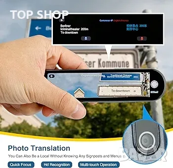 【Сканираща писалка за превод】: Една от ключовите характеристики на нашия езиков преводач е способността му да сканира текст и да го превежда незабавно. С 5,0-инчов сензорен екран и камера с висока разделителна способност от 5 милиона пиксела можете лесно да сканирате текст и да получавате точни преводи в реално време. Тази функция е особено полезна, когато трябва да четете знаци, менюта или други писмени материали на чужд език.