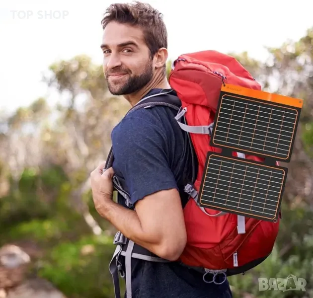 соларно зарядно 20W е подходящо за къмпинг, каране, катерене, скално катерене, всякакви дейности навън.