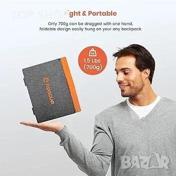Сгъваем и лек: Соларното зарядно устройство се предлага със сгъваем дизайн (размер на сгъване: 12,0 x 9,8 x 0,6 инча, размер на разгъване: 18,2 x 12,0 x 0,6 инча). 2 компактни слънчеви панела, които могат да се сгънат в таблет с размер само 1,5 фунта (700 г) и лесно да се окачат на вашата раница или пътна чанта с включени 2 метални карабинера. Преносимото