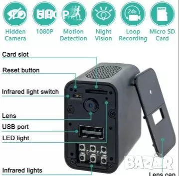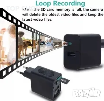 Зарядно устройство за шпионска камера с аудио и видео рекордер, за да осигурите пълни записи! Висока разделителна способност в Full HD 1920 x 1080 пиксела наистина ще ви придружава и ще ви позволи да сте в безопасност. Но това не е всичко, този шпионски обект може да се използва и за шега на приятелите ви и да ги снимате дискретно или за да наблюдавате децата си, когато сте далеч от дома. Като инструмент за видеонаблюдение във вашата работа, той също е опция с безпогрешно откриване на движение за проследяване на всички движения на лица.