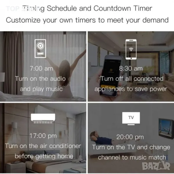 3. Използвайте гласово управление със свободни ръце с Amazon Echo или Google Home, за да промените температурата на климатика, да включите вентилаторите, да смените телевизионния канал, да пуснете DVD-та, да включите вашата кабелна кутия и т.н. За да видите съвместими марки и устройства, проверете приложението Smart Life