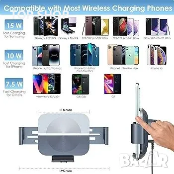 15 W Qi държач за мобилен телефон за кола с функция за зареждане