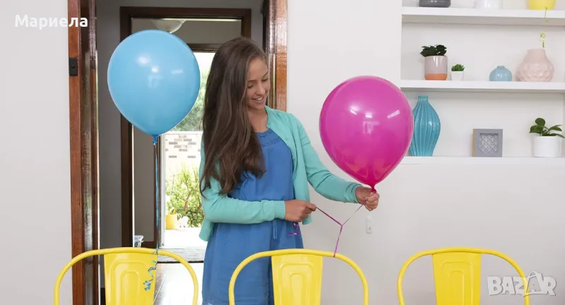 Комплектът съдържа 16 сини балона и електрическа помпа.