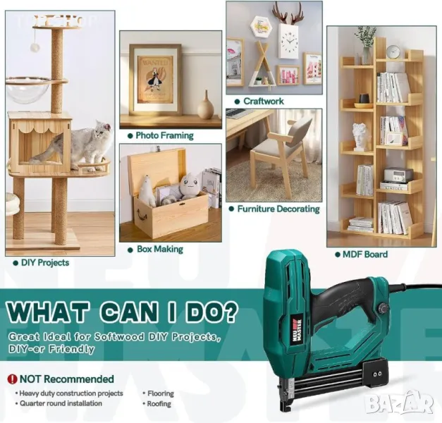 пистолет за пирони/пистолет за телбод за Направи си сам проект за тапицерия, подобряване на дома и дървообработване