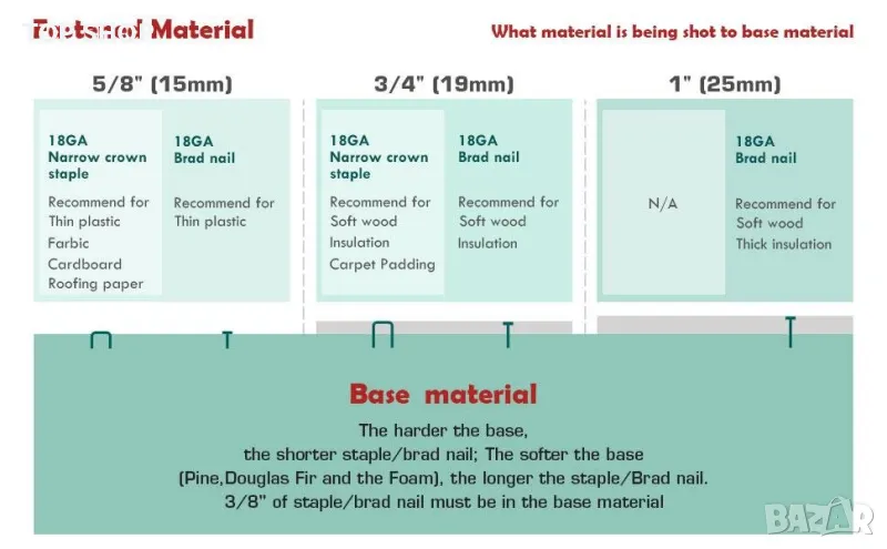 【2-в-1 ПРИЛОЖЕНИЕ】- Изключително практичен многофункционален 2-в-1 гвоздей за забиване, способен да закрепва телбод и гвоздей. Работи с 5,8 mm тясна телбод с корона от 15 до 25 mm, и 18 калибър гвоздей от 15 до 32 mm.