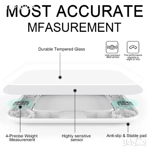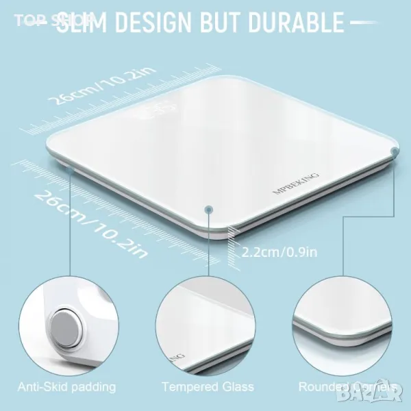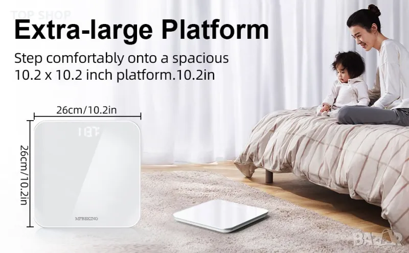 - MPBEKING везни, изработени в дизайн със заоблен ъгъл, везната за баня е устойчива на счупване и ви предпазва от остри ръбове; 4 подложки против хлъзгане осигуряват стабилност и безопасност, когато стъпвате, висококачественото закалено стъкло и шлайфането на ръба на стъклото няма да наранят крака ви. ?Bluetooth 5.0 цифрова везна? - Сканирайте QR кода или изтеглете безплатно (тялото от теглото;) в APP store или Google Play, Везните за тегло работят във връзка с приложения за фитнес, проста и лесна стъпка към по-здравословен начин на живот. (3 x 1,5 V AAA батерии са включени). ?Везни за баня с висока точност? - Всяка везна е оборудвана с 4 сензора с висока точност, за да осигури точни измервания на теглото на ясен дисплей; Автоматично свързване, автоматично разпознаване, автоматично ВКЛЮЧВАНЕ/ИЗКЛЮЧВАНЕ, диапазон на измерване от 0,22lb-400lb (0,1-181kg) Накратко, цифровите везни за баня MPBEKING са най-точни. „Изключително широка и голяма цифрова везна с LCD дисплей? – Изработена от издръжливо темперирано стъкло, везната е различна от другите везни за баня; Голяма широка платформа 11,8 in x 11,8 in за хора с големи крака или хора, които имат проблеми с баланса; LCD дисплей с големи цифри и ярък дисплей с подсветка са лесни за четене дори в тъмна среда.