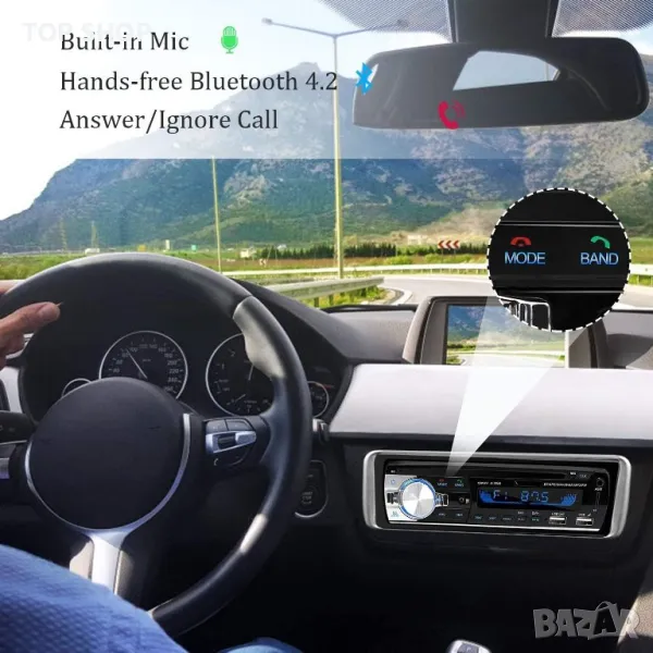 Bluetooth версия 5.0, бърза и лесна Bluetooth връзка. Мощност от 65 W x 4, по-добро и стабилно качество на музиката и разговорите. С дистанционното управление от волана можете също да отговаряте и затваряте повиквания, да пускате музика и да променяте режима