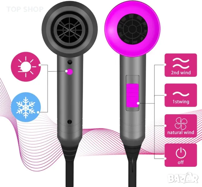【1 копче за скорост и 3 настройки на топлина】1 копче за управление на скоростта и три настройки за нагряване за пълно изсушаване и гъвкавост при стилизиране. Лесно контролиране на температурата и скоростта на вятъра, за да направите любимата си прическа у дома.