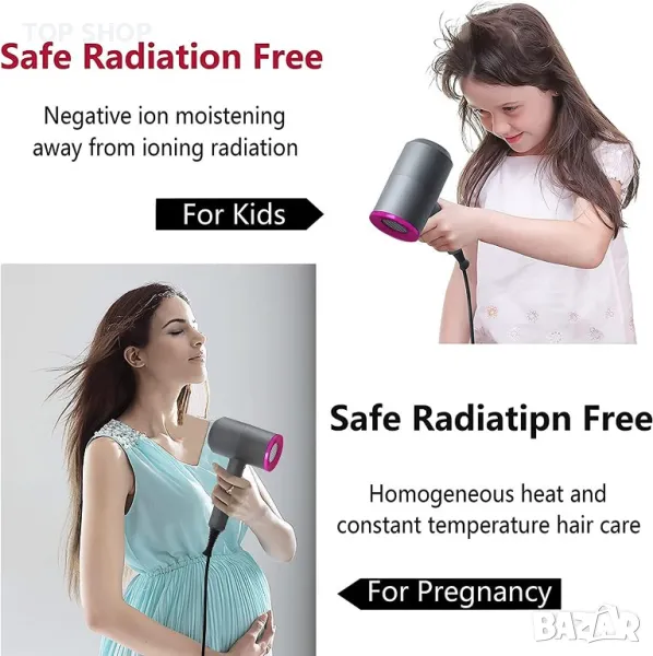 【Грижа за косата при постоянна температура и дизайн за намаляване на шума】 С вградени устройства за сигурност, захранването се прекъсва автоматично, когато температурата се покачи твърде високо. Вградена е висока концентрация на отрицателни йони. Дългосрочната употреба може да подобри блясъка и мекотата на косата, кажете сбогом на сплъстената коса! В допълнение, интелигентният дизайн за намаляване на шума намалява шума и ви кара да се отпуснете! Добре е да се използва от бременни и деца.