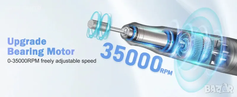 Акумулаторна и безжична пила за нокти: разполага с батерия с голям капацитет и USB Type-C зареждане, осигуряващи до 5 часа непрекъсната употреба. Перфектен за грижа за ноктите в движение, той осигурява мощна производителност без проблемите с кабелите.