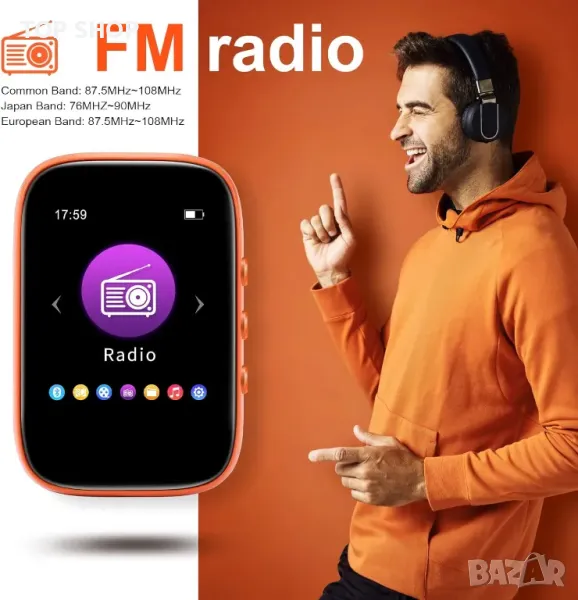QNGEE Mp3 плейър с Bluetooth, преносим Mp3 Mp4 музикален плейър с FM радио Гласов запис Електронна книга Календар Алармен клип Mp3 плейър с 32 GB памет за спорт
