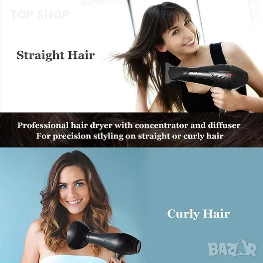 МУЛТИФУНКЦИОНАЛЕН СЕШОАР: 3 настройки за топлина / 2 скорости. По-студеният въздух намалява къдренето и може да помогне за насърчаване на блясъка на косата и да оправи прическите ви. 2-метровият кабел осигурява повече свобода на движение.