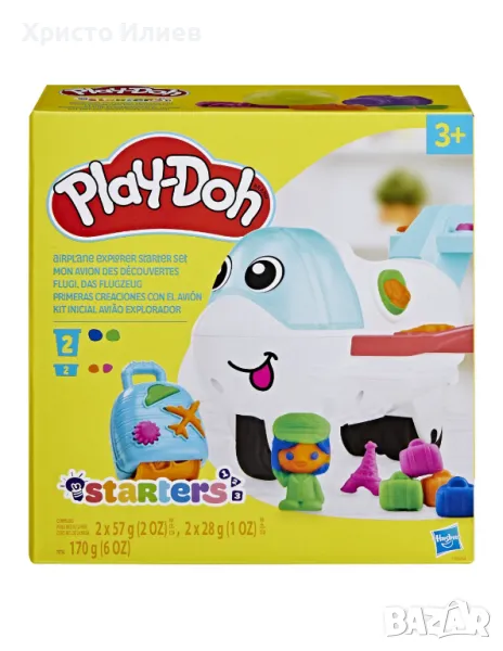 Добре дошли на борда на стартовия комплект Play-Doh Самолет изследовател! С тази детска играчка самолет има много начини да си играят със сместа за моделиране Play-Doh и да си представят собствените си приключения по света - не се изисква паспорт. Малките авиатори могат да правят и съпоставят предмети върху килимчето за игра, да карат пилоти и пътници да карат самолета играчка и много повече с 3 инструмента Play-Doh и 4 различни комбинирани цвята. Играчки за въображение като този комплект Play-Doh могат да помогнат на децата да развият интерес към своите общности и света около тях, докато упражняват фини двигателни умения и развиват своята креативност. Къде ще ги отведе тяхното въображение след това?