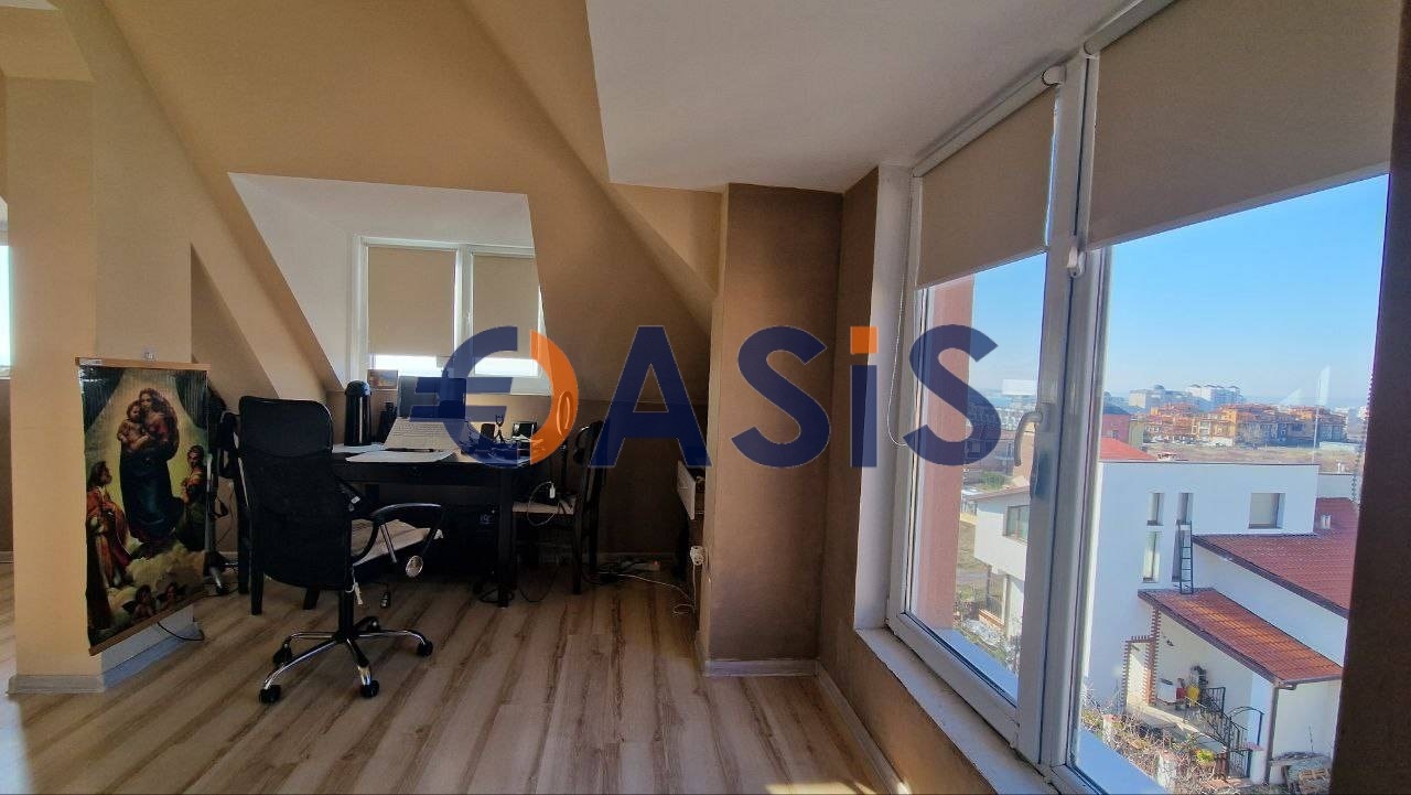 Разпределение в апартамента: коридор, стая с кухненски бокс и кът за сядане, спалня, баня с тоалетна. Апартаментът се намира на мансарден етаж. Всекидневната разполага с четири прозореца с панорамна гледка към морето.