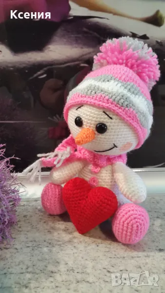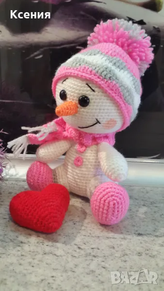 Подаръци за Св. Валентин. Снежен човек. Ръчно изработена, Плетена играчка → Обява 48779653