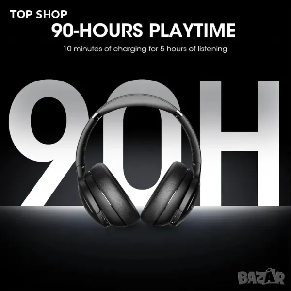 90 часа възпроизвеждане Bluetooth 5.3 безжични слушалки 3 EQ режима, вграден HD микрофон, HiFi стерео звук, дълбок бас, чаши за уши от мемори пяна за телефон/компютър и пътуване/фитнес зала/тренировка