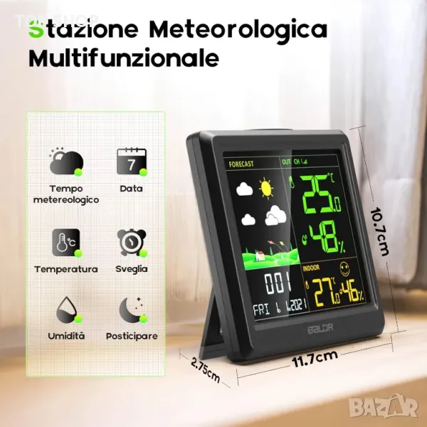 Безжична метеорологична станция Baldr, радиоуправляема с температура и влажност