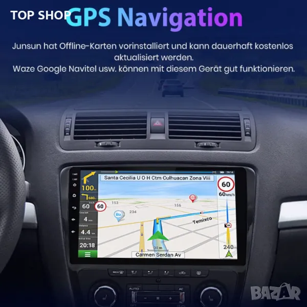 Специални характеристики: FM трансмитер, MP3 плейъри, мобилен телефон, радио тунер, вграден GPS, Bluetooth, сензорен екран