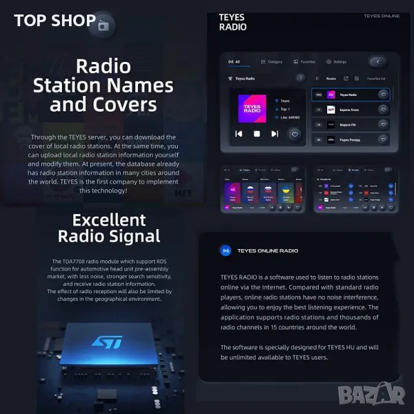 13. Отличен радиосигнал, може да показва имена на радиостанции и корици