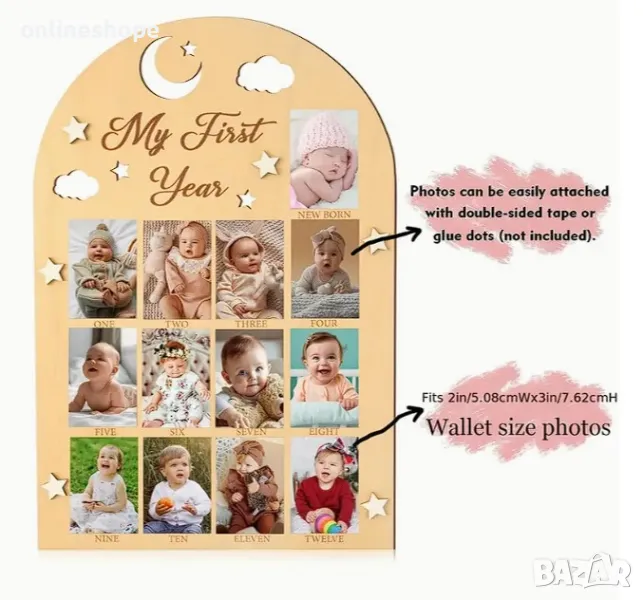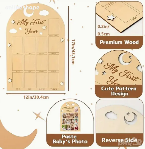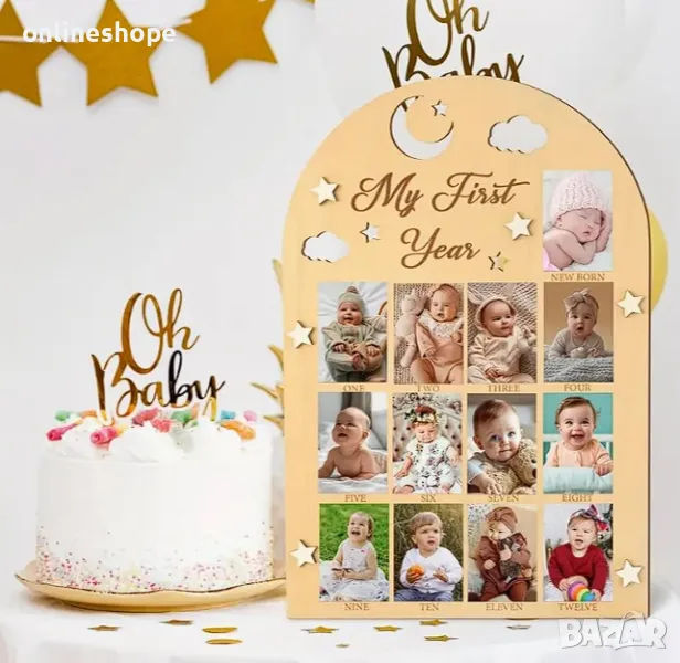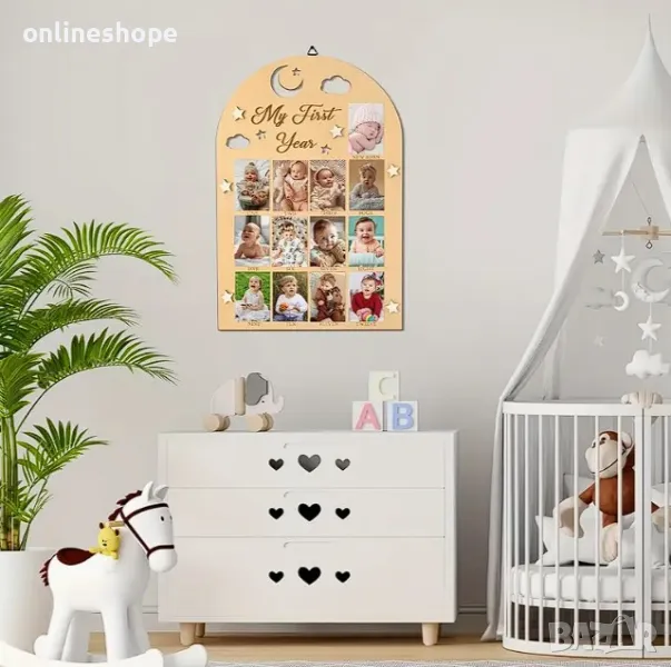 Дървена рамка за снимки - Моята първа година / месеци за бебе дете → Обява 48780201