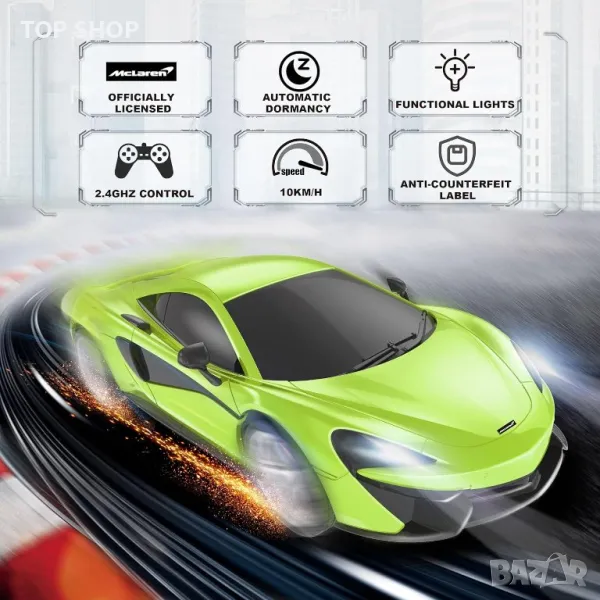 AEROQUEST McLaren 570S Кола с дистанционно управление, 2.4 Ghz RC Car Официален лицензиран 1/24 модел състезателна хоби играчка с фарове за момчета, момичета, деца, тийнейджъри и възрастни Подаръци, зелен