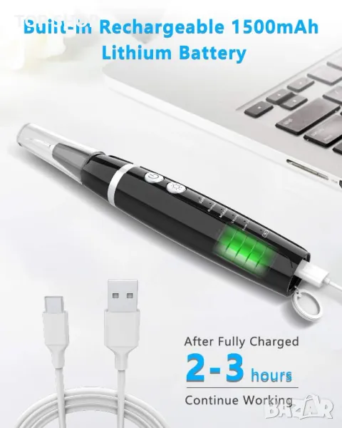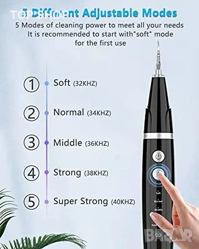 ❥【3 режима и 2 глави】Вашият уред за отстраняване на зъбен камък 5 режима на почистване с различна сила, за да отговори на нуждите от различно почистване на зъбите,3 различни форми на 304 почистващи глави от неръждаема стомана за различни части на зъбите.