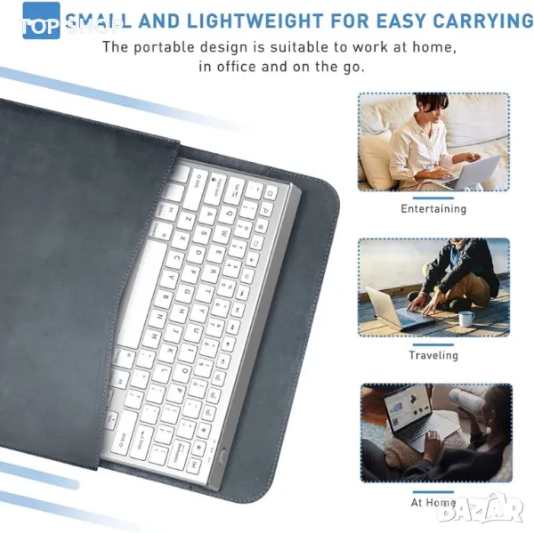 Ултра-преносима и 7-цветна подсветка: С ултра-тънък дизайн, тази безжична клавиатура е преносима, което е чудесен избор за работа, учене. Регулируемият цвят и яркост на фоновото осветление ще отговарят на вашите персонализирани нужди. Улеснете намирането на ключовете си на тъмно.