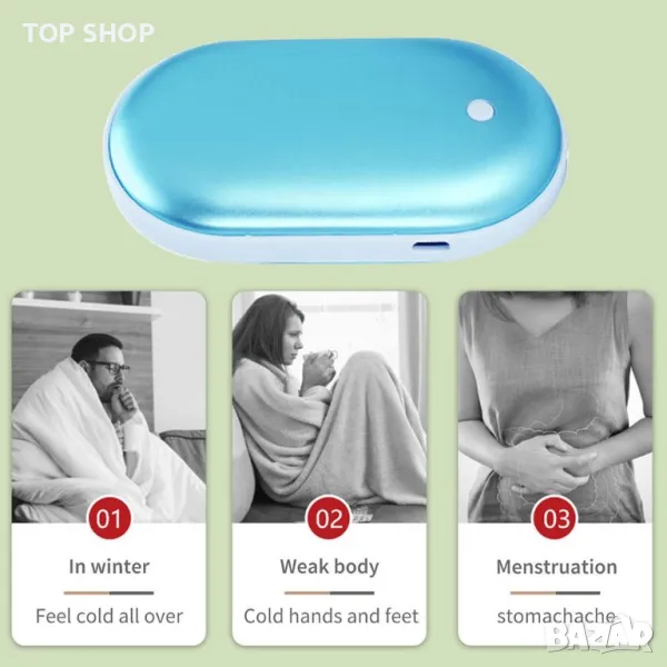 - 2 в 1 - акумулаторен нагревател и външна батерия.