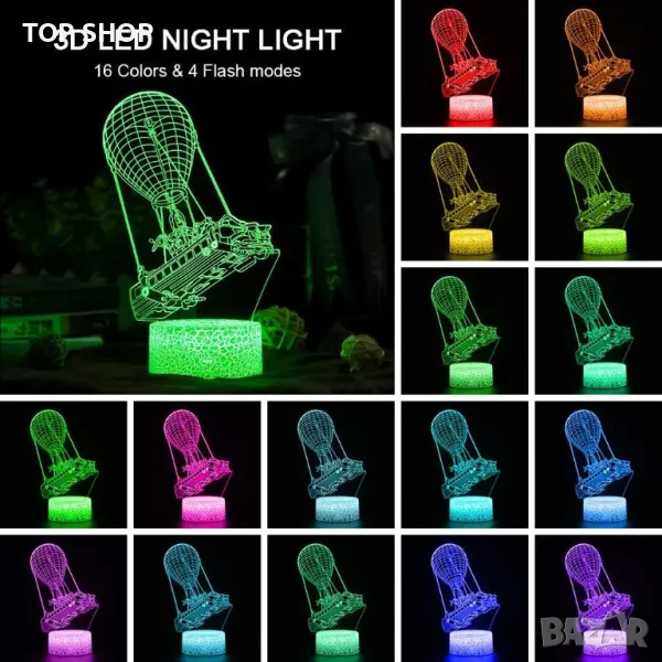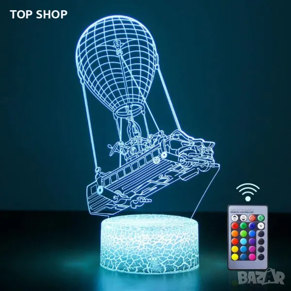WHATOOK Battle Bus 3D нощна лампа с дистанционно 16 променящи се цвята USB захранвана илюзионна лампа, балон с горещ въздух 3D лампа Домашен декор Подарък за детски рожден ден/ден на майката