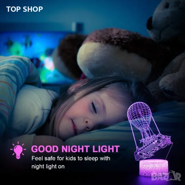 Осигурете качество на съня на децата: Лампата за спалня използва нов дизайн на ABS държач за лампа и екологичен акрилен материал, който е здрав и с висока якост. 3D лампата е най-подходящата нощна лампа за декорация на бебета и деца. Светлината е мека и ярка, нека вашето прекрасно дете да се чувства топло и да спи добре през нощта.