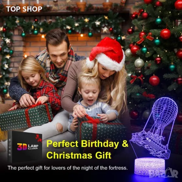 Творческа декорация на стая: Това е серия от игри 3D нощна светлина. 3D илюзионна лампа се показва, когато светне, оптична акрилна плоска дъска, издълбана с лазерна светлина, ви дава невероятни 3D визуализации. Самата 3D нощна светлина всъщност е плоска, но може да създаде иновативна 3D визуална артистична атмосфера. Това със сигурност ще изненада и впечатли вашите деца.