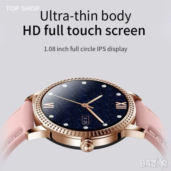 Смарт часовник QNMM CF18P за жени, водоустойчив часовник IP67, Луксозен смарт часовник с монитор за сърдечен ритъм за Android 4.4, iOS 8.0 или по-нова версия