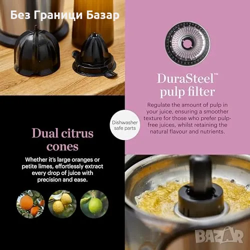 Дуростил прецизен филтър за регулиране на пулпа и гладка текстура на сока.