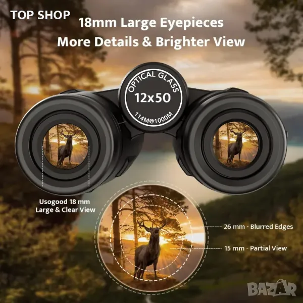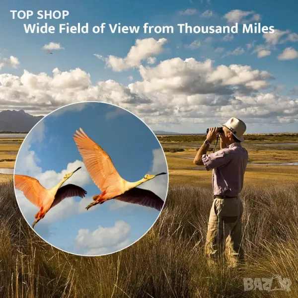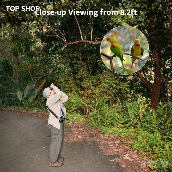 【Бинокъл за наблюдение на птици за възрастни】С 12-кратно увеличение и 50 mm обектив осигурява ярка и ясна видимост до 374 фута/1000 ярда. Най-близкото разстояние за наблюдение от 2,5 метра е подходящо и за наблюдение на птици в градината. Проектиран за наблюдение при различни дейности като туризъм, спортни събития, концерти и наблюдение на звезди и специален подарък за семейството и приятелите.