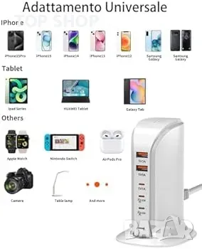 Безопасно и надеждно USB C зареждане Безопасността е наш основен приоритет и нашата 3C2A станция за зареждане включва защита от пренапрежение, свръхток, късо съединение и прегряване, за да гарантира, че вашите устройства са в безопасност по време на зареждане. Можете да се доверите на нашето мулти