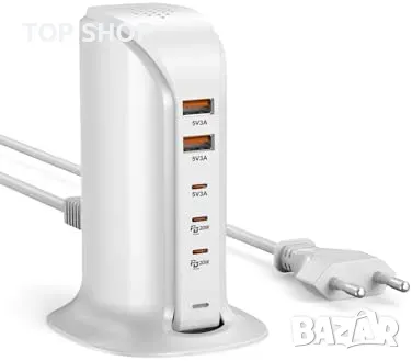 зарядно за мобилен телефон WUKUR 5-портово USB C зарядно устройство, 55W
