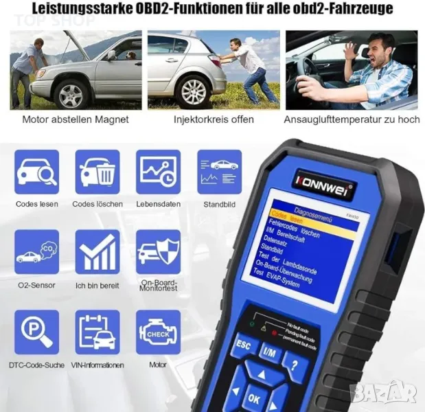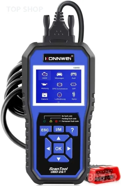 Диагностичният инструмент KONNWEI KW450 obd-ii е професионален obd2 четец за ентусиасти, независими ремонти, специализирани сервизи и техници.