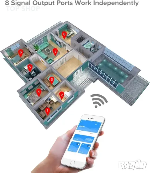 Вграден микрофон/AUX музика SP608E Bluetooth контролер с 8 сигнални изхода за LED модул