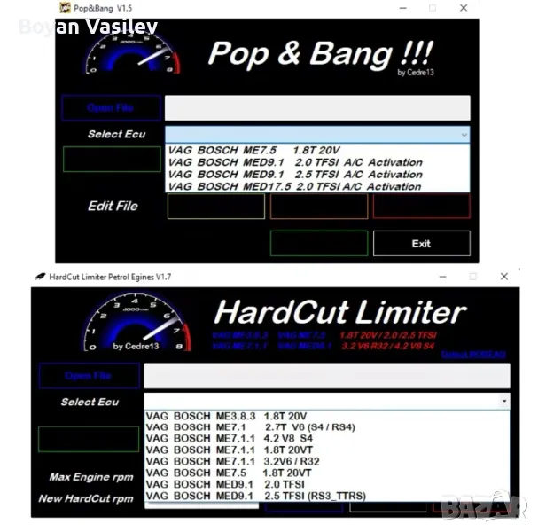 Софтуери за чип тунинг DaVinci Xdecoder WinOLS PopBang TunerCalc
