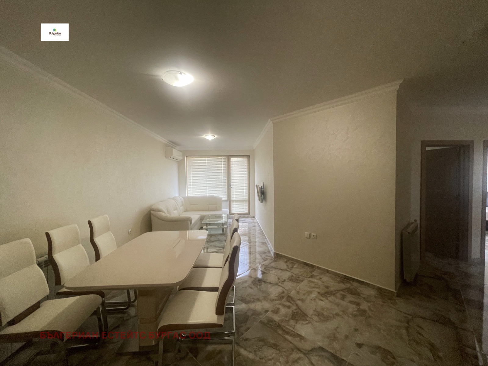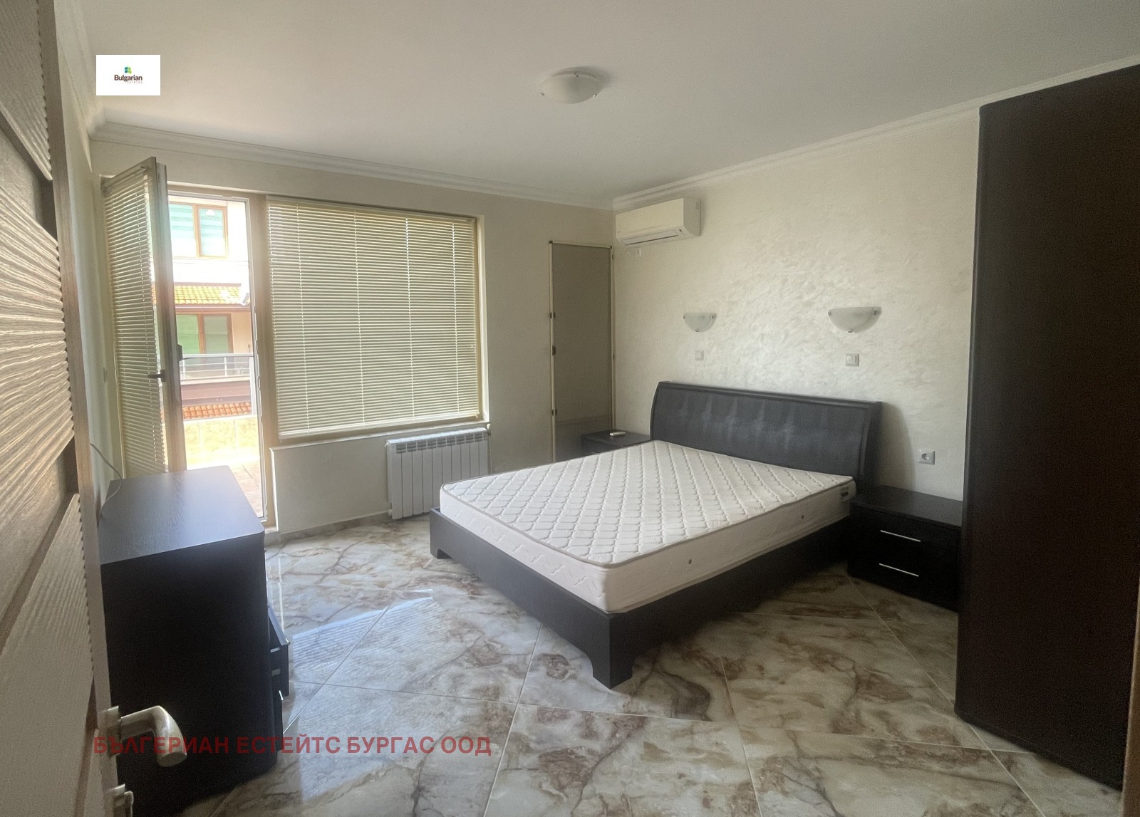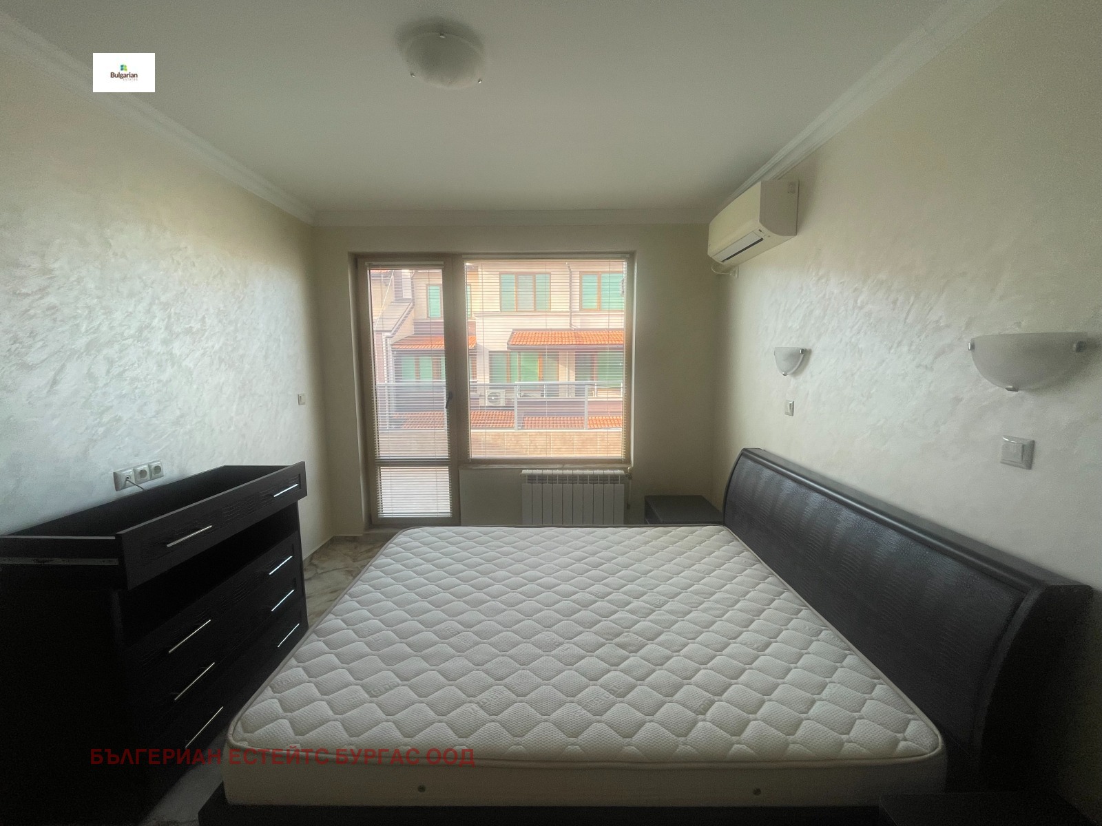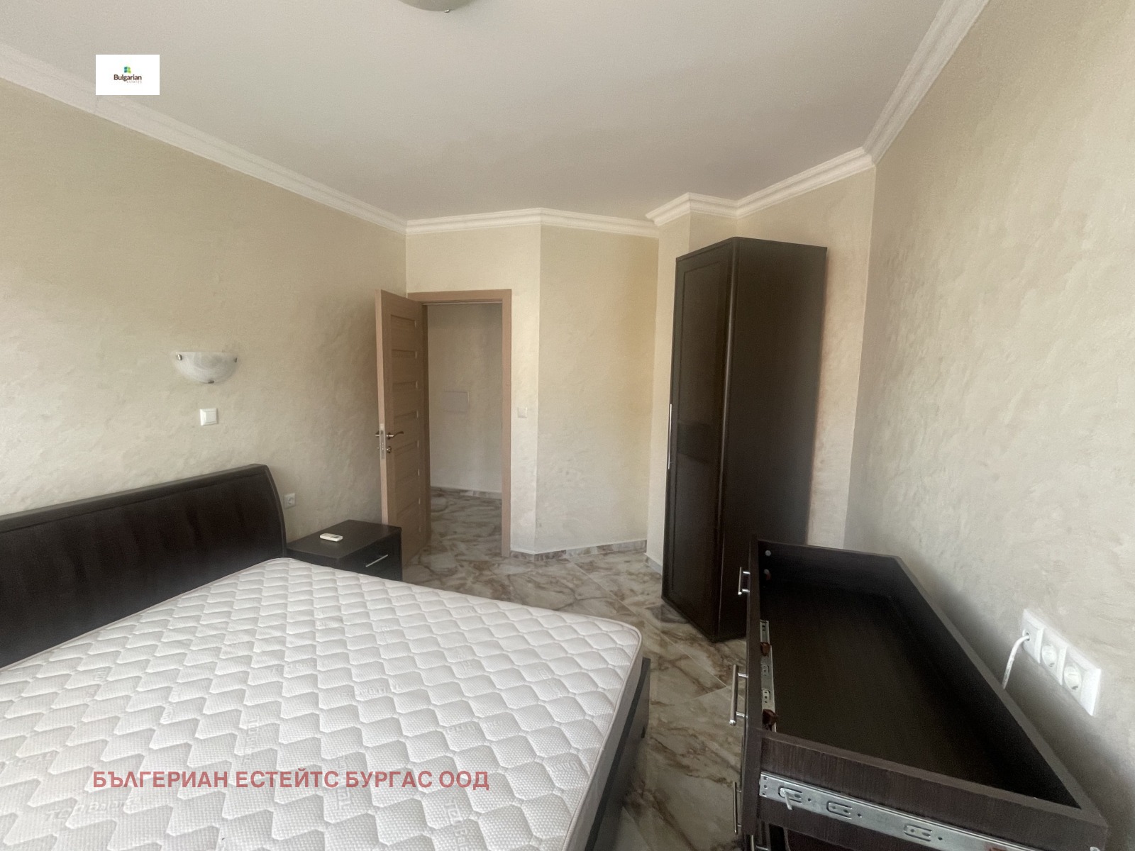 Апартаментът е в жилищна сграда въведена в експлоатация 2016 с луксозни общи части, стълбище с ковано желязо и два модерни асансьора, на пети последен жилищен етаж. Състои се от коридор, дневна с трапезария, кухненски кът, две спални, баня с тоалетна и прекрасна тераса с частична гледка към морето. Обзаведен е функционално с всички мебели и уреди необходими за едно домакинство. За удобството на новите собственици е инсталиран котел, който захранва подовото отопление и радиаторите, които са поставени във всяка стая.
