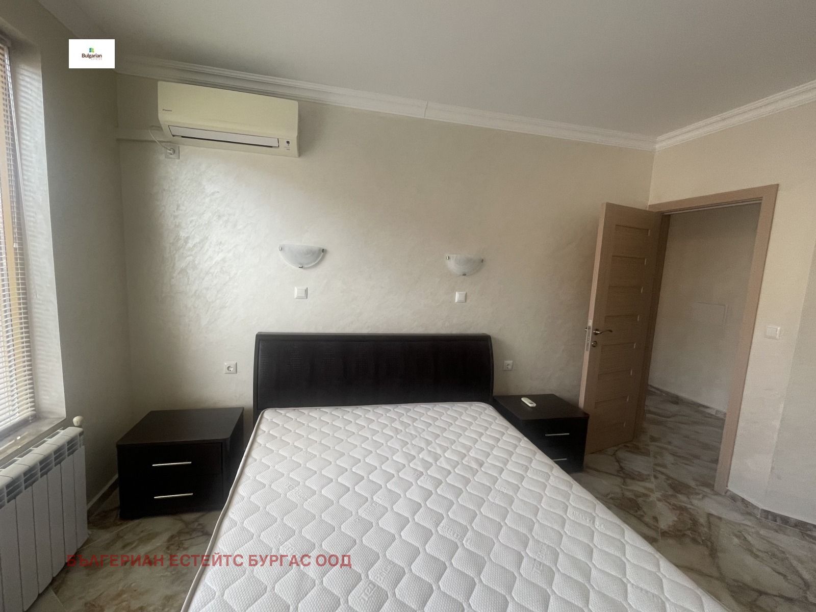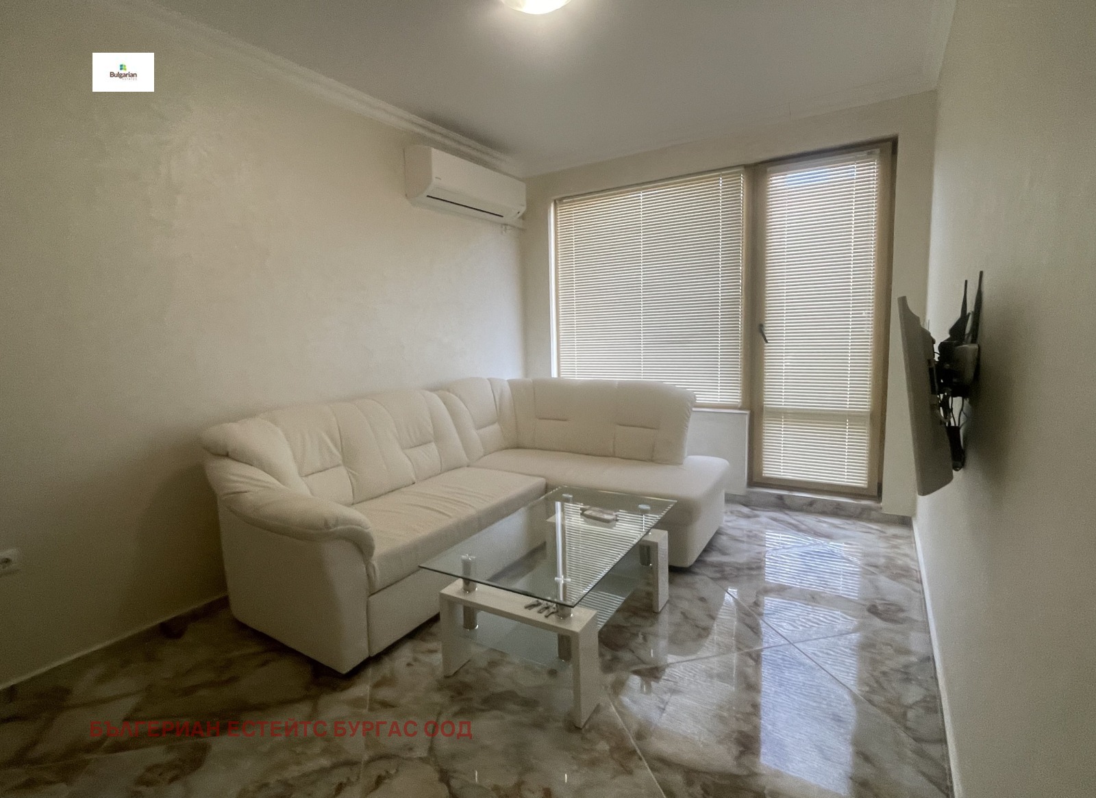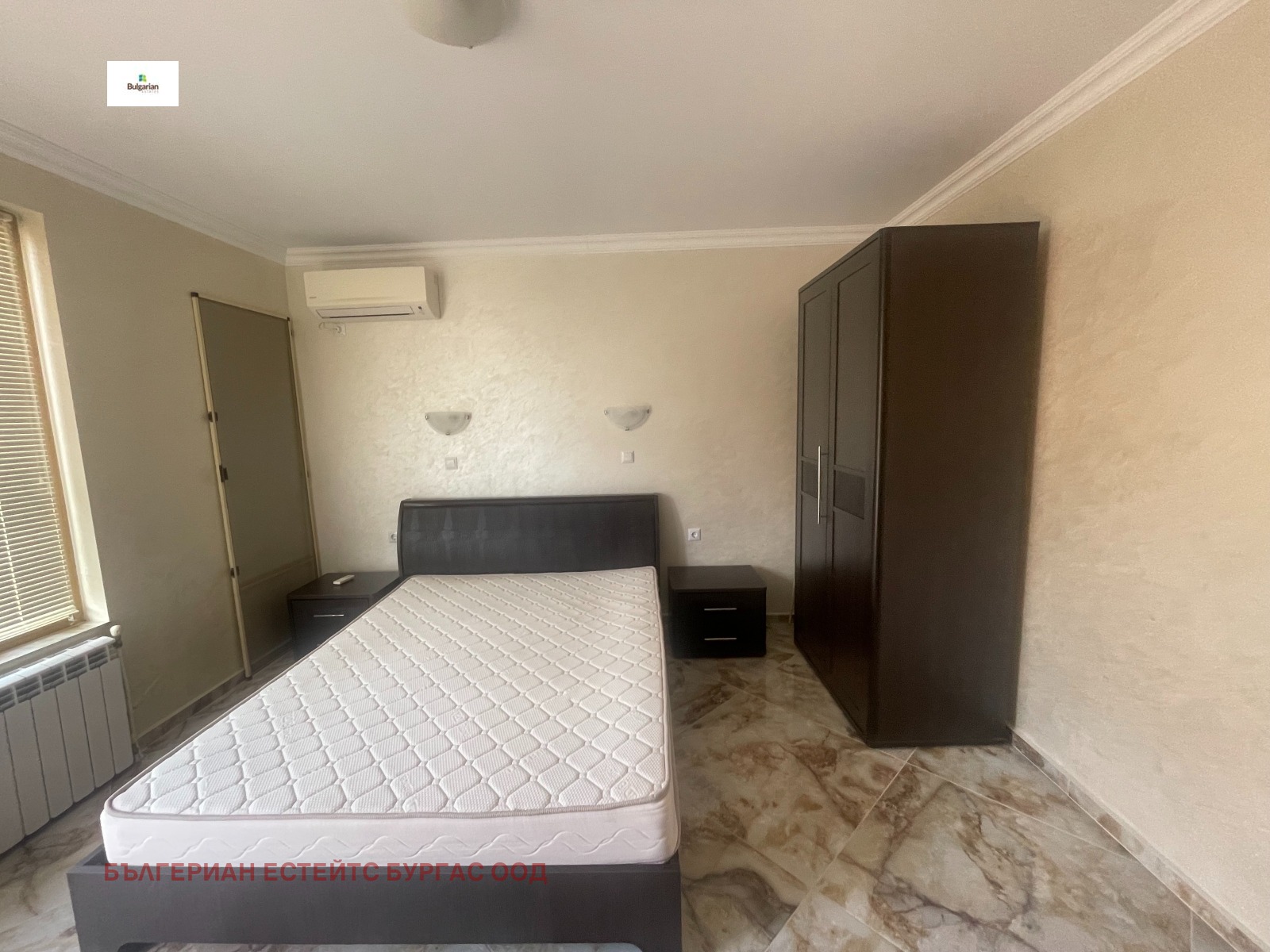 Апартаментът е в жилищна сграда въведена в експлоатация 2016 с луксозни общи части, стълбище с ковано желязо и два модерни асансьора, на пети последен жилищен етаж. Състои се от коридор, дневна с трапезария, кухненски кът, две спални, баня с тоалетна и прекрасна тераса с частична гледка към морето. Обзаведен е функционално с всички мебели и уреди необходими за едно домакинство. За удобството на новите собственици е инсталиран котел, който захранва подовото отопление и радиаторите, които са поставени във всяка стая.