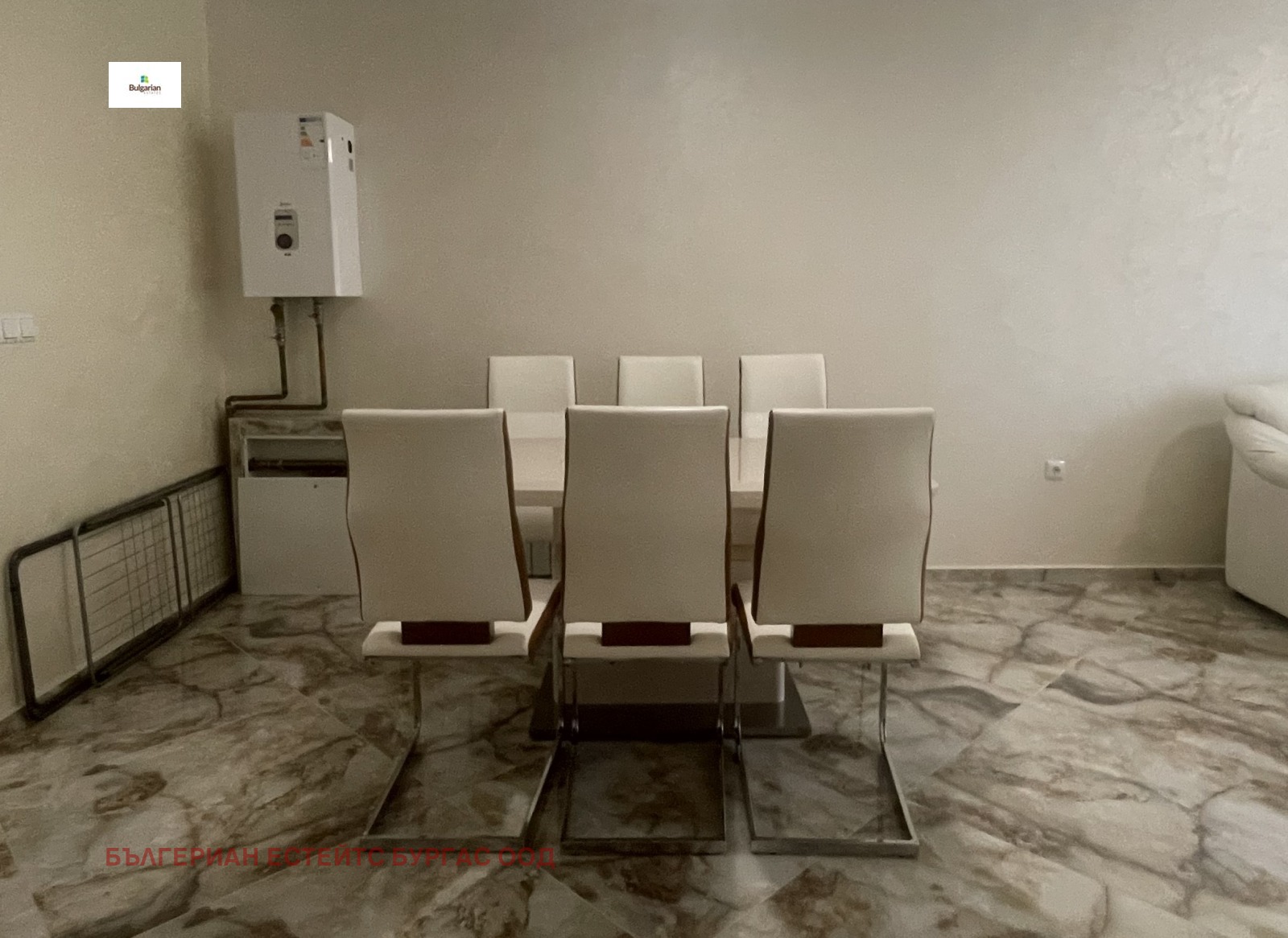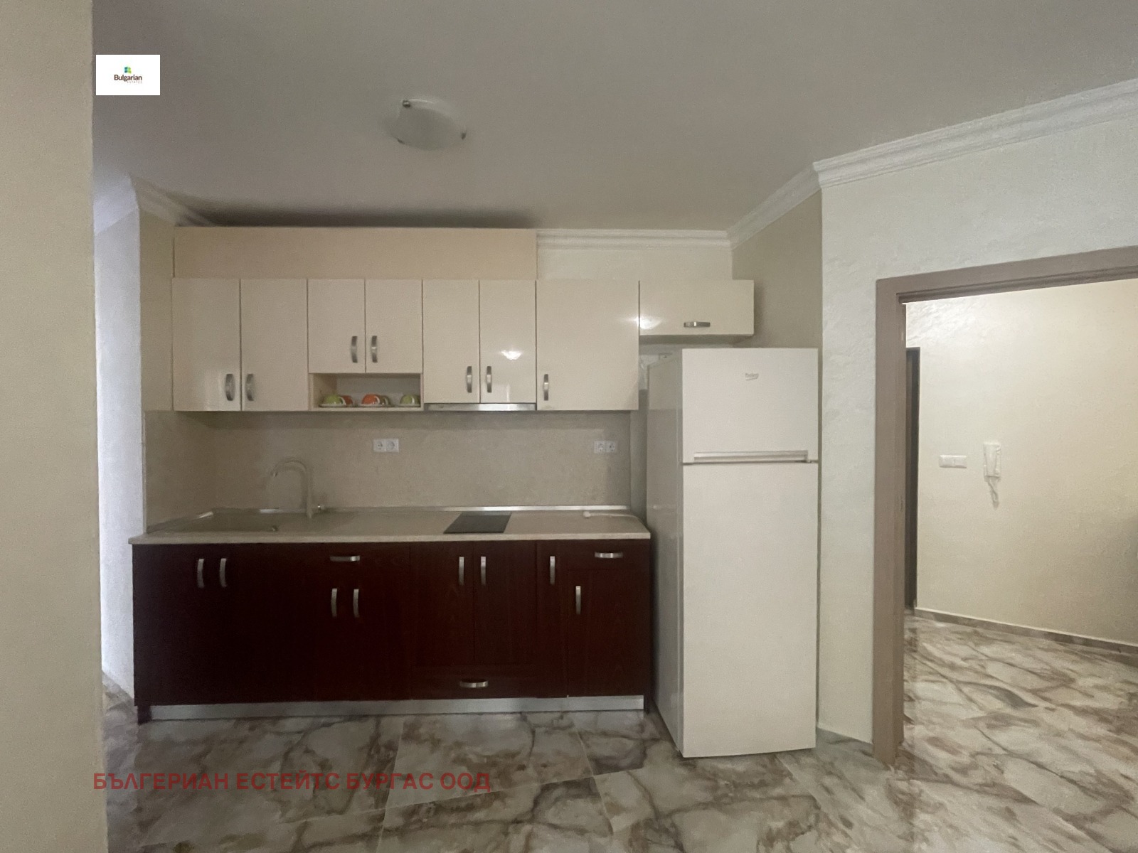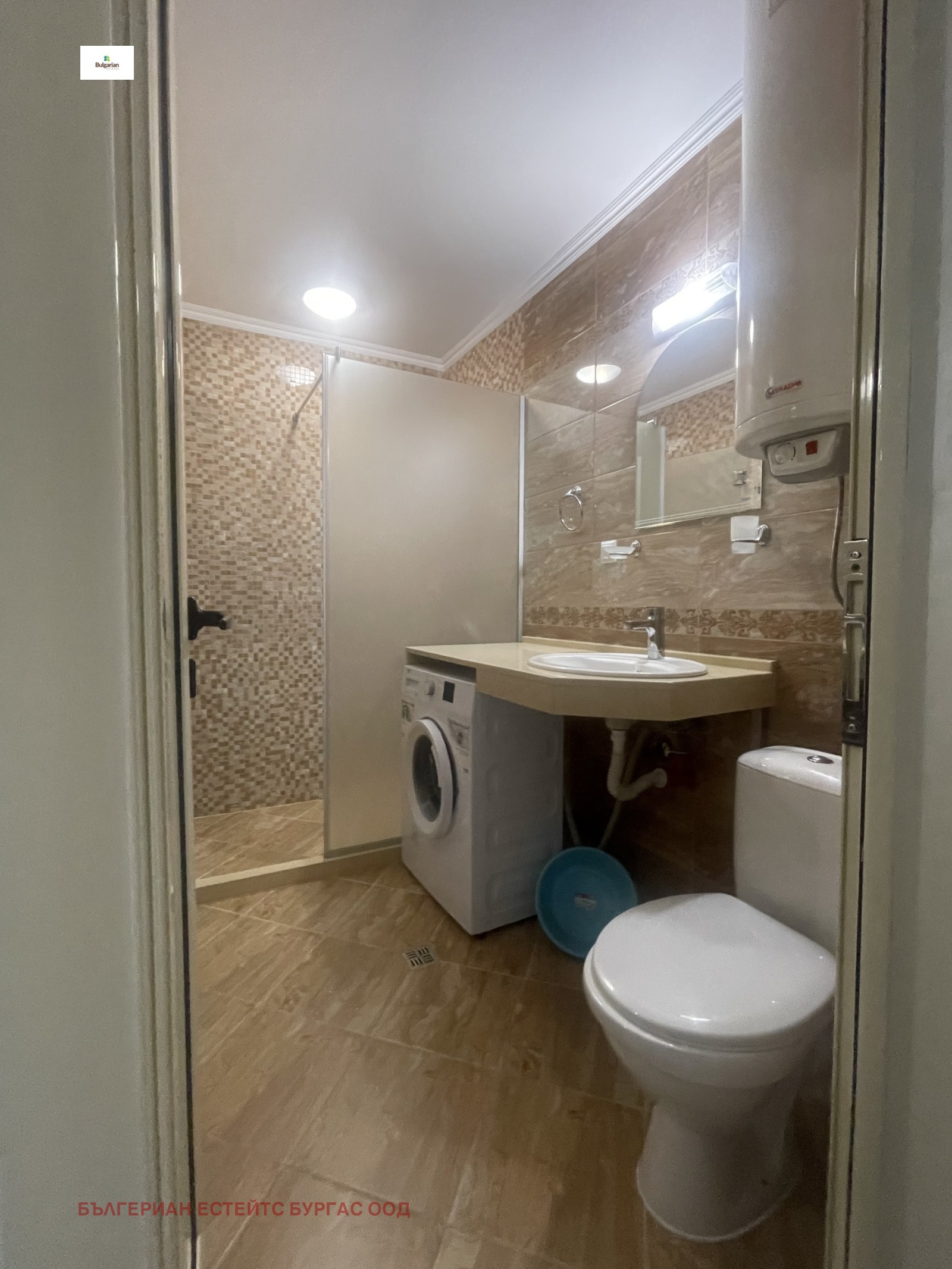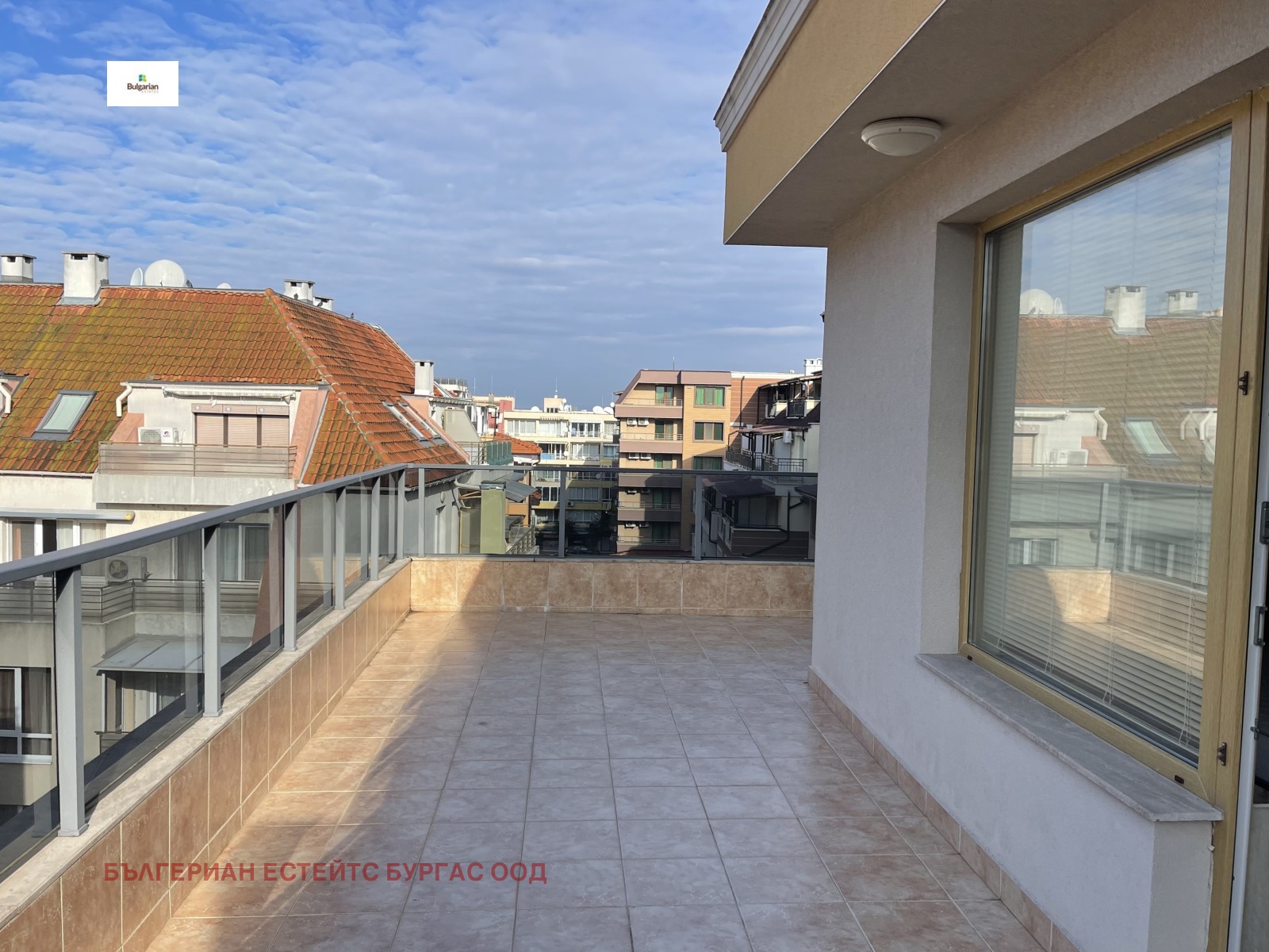 Апартаментът е в жилищна сграда въведена в експлоатация 2016 с луксозни общи части, стълбище с ковано желязо и два модерни асансьора, на пети последен жилищен етаж. Състои се от коридор, дневна с трапезария, кухненски кът, две спални, баня с тоалетна и прекрасна тераса с частична гледка към морето. Обзаведен е функционално с всички мебели и уреди необходими за едно домакинство. За удобството на новите собственици е инсталиран котел, който захранва подовото отопление и радиаторите, които са поставени във всяка стая.