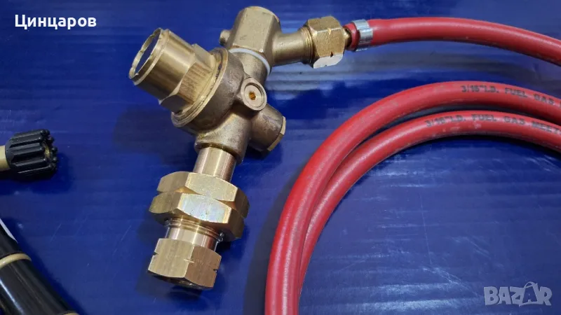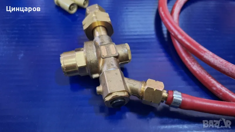 Предпазен клапан монтиран към редуцир-вентил против връщане газ и гасене дъга/обратен удар/.