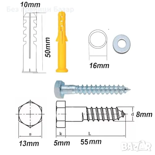 Нов Комплект дюбели и винтове M10x50 мм за устойчиво закрепване стена