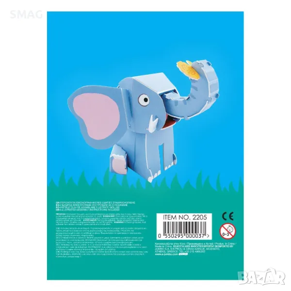 3D конструкторски пъзел със средна трудност (2/5), с лесно сглобяване от 60 до 100 минути, което не изисква лепило или ножица. Оформете слонче с размери 25x20x13cm с движение по хоботчето.