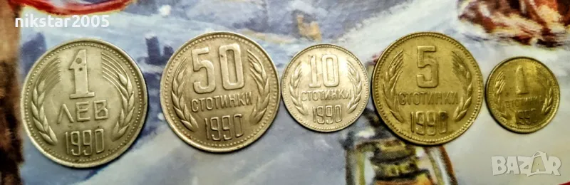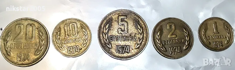 монета от 2 стотинки 1962,една монета от 1 стотинка 1981,серия от 5 монети 1-5-20-50-1лев-1990,серия от 1-2-5-10-20-стотинки 1974,монетите не са обработвани с химикали